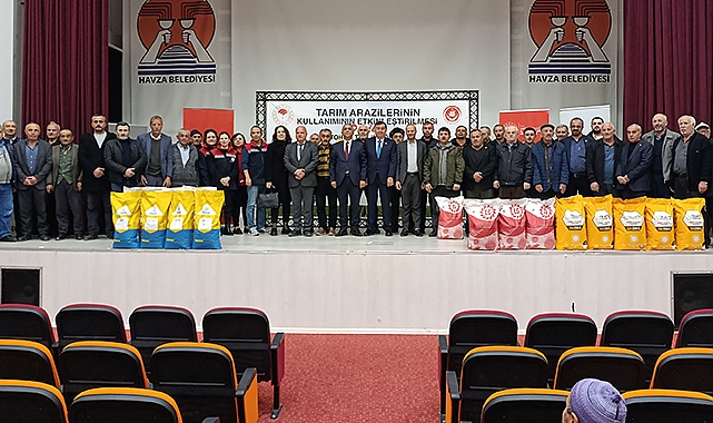Tarım Arazilerinin Kullanımının Etkinleştirilmesi Projesi kapsamında Havza’da 7 bin dekar alanda ekim yapılmak üzere 350 çiftçiye yüzde 70’i hibeli 350 torba yağlık ayçiçeği tohumu dağıtımı gerçekleştirildi.